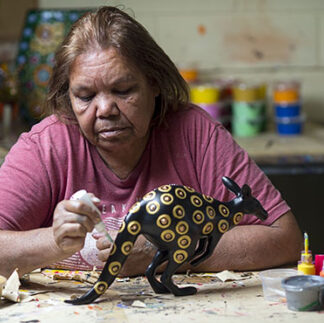 Arlpwe Art & Culture Centre sits on Kaytetye Country in Ali Curung, an Aboriginal community about 400km north of Alice Springs. Visit the Art Centre, they are on a sealed road just 22kms off the Stuart Highway, between Alice Springs and Tennant Creek.